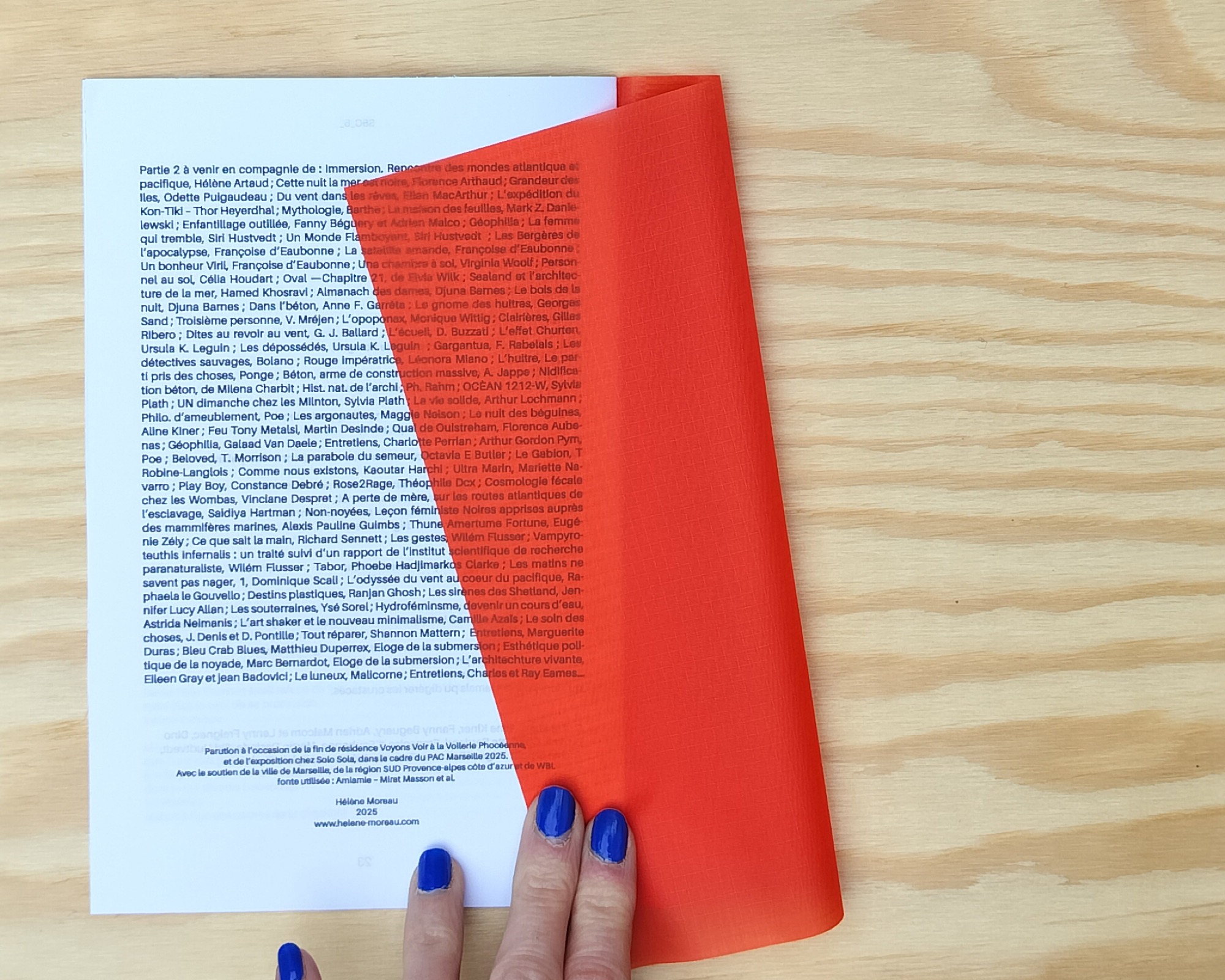 Parution à l’occasion de la fin de résidence Voyons Voir à la Voilerie Phocéenne, et de l’exposition chez Solo Sola, dans le cadre du PAC Marseille 2025. Avec le soutien de la ville de Marseille, de la région Sud Provence-alpes côte d’azur et de WBI.